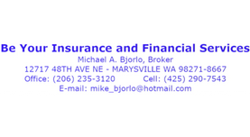 I own Be Your Insurance and Financial Services. I received my Bachelor of Arts degree in Business from the University of Washington in 1970. I have been an insurance broker since 1978.